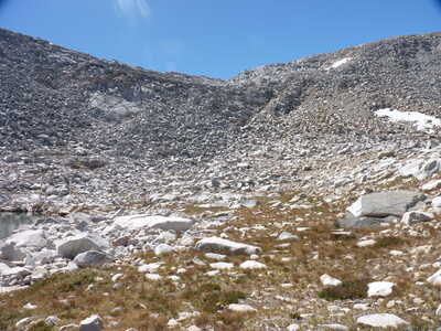 ![]() the large talus of Steelhead Pass | ![]() chipmunk on a rock |
