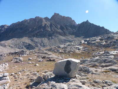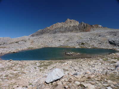 Journal Entry: Cold night—28F. No sun in camp until after 8am due to Mt. Humphreys. Got a late start at 9:15 since it was an easy day. Visited Marmot Lake, Cody Lake, and a few unnamed lakes before getting to Piute Pass around 1pm. Easy, short hike down to Piute Lake where we got a campsite around 2:15. Clear skies continue. Tomorrow a short hike out and drive home.