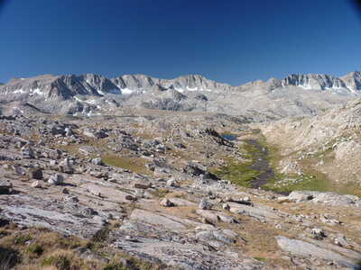 down (!) to Piute Pass.
